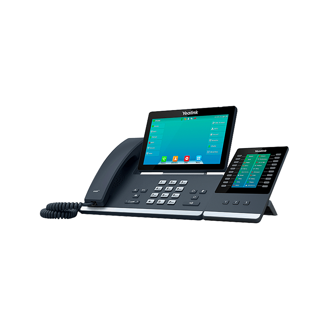 T57W + EXP50 Connect up to 3 Expansion Modules EXP50 (Self-adaptive slidecar with color screen) for more line keys